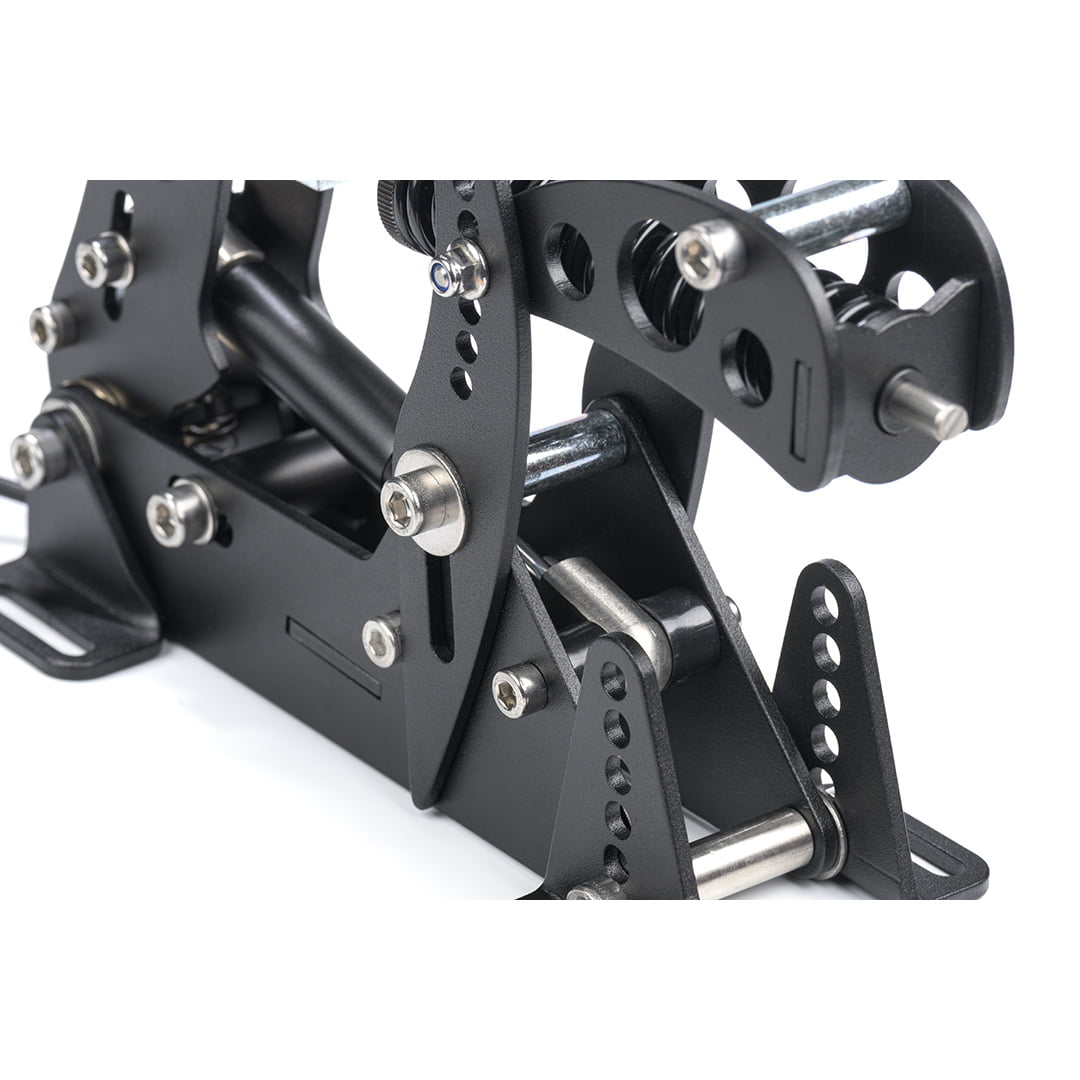 A clutch feels lighter towards the end of travel. The Sim Pedals Ultimate+ clutch features a regressive spring mechanism simulating this concave force curve and also allows you to greatly adjust the pedal resistance, travel and feel.